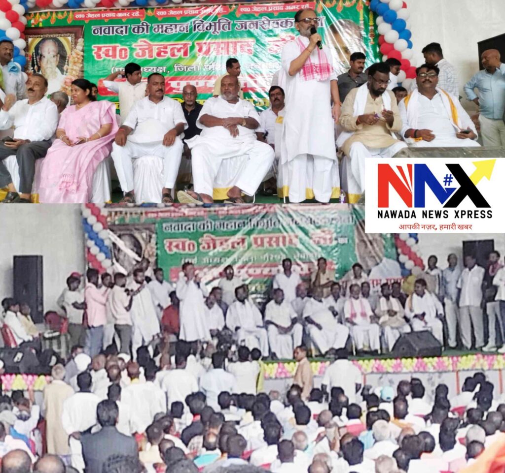 जनसेवक और दीनबंधु स्व. जेहल प्रसाद की 9वीं पुण्य स्मृति दिवस पर मंगलवार को नवादा के पथरा इंग्लिश स्थित स्मारक स्थल पर श्रद्धा और सम्मान का सैलाब उमड़ पड़ा।