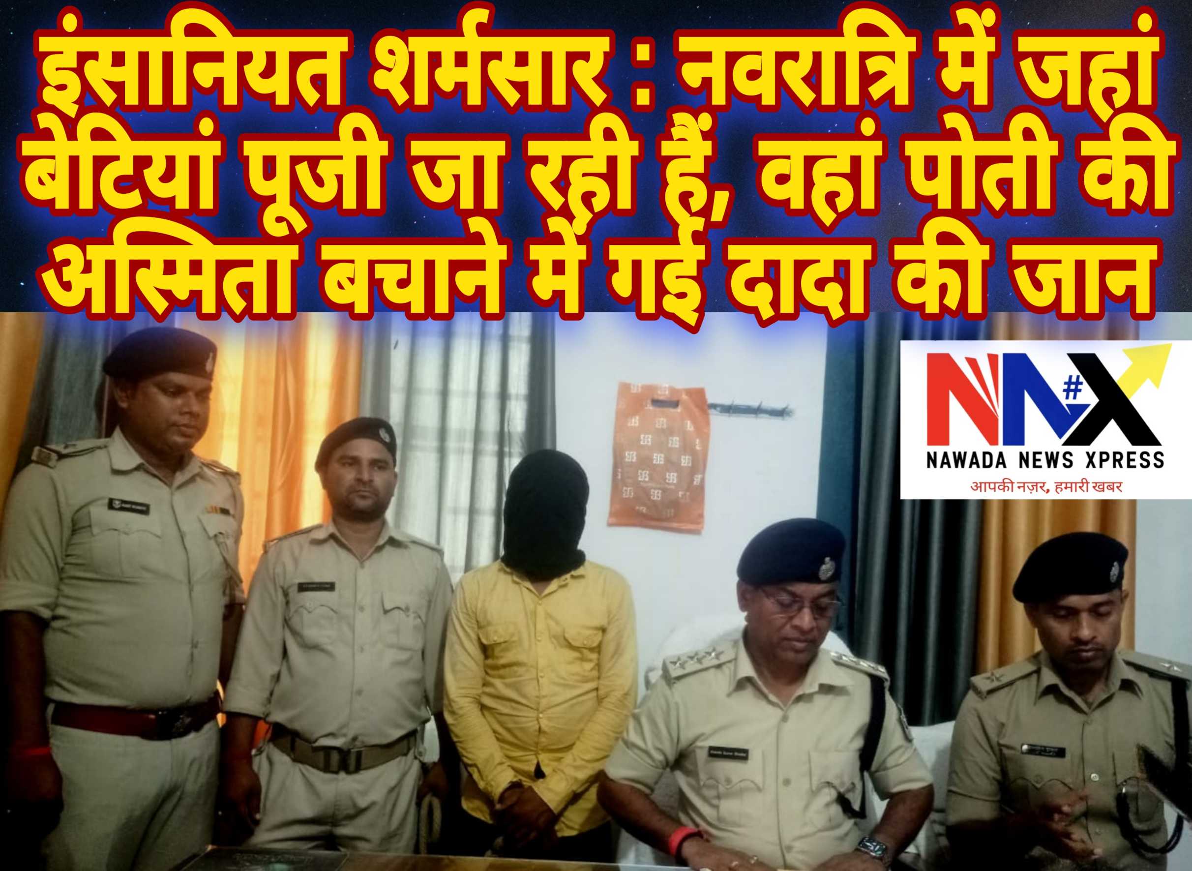 नवादा में नवरात्रि का पावन पर्व चल रहा है। जगह-जगह कन्या पूजन और बेटियों को देवी का स्वरूप मानकर पूजा की जा रही है। सरकार “बेटी बचाओ, बेटी पढ़ाओ” का नारा देती है। लेकिन, इन्हीं नारों और परंपराओं के बीच एक दर्दनाक सच्चाई सामने आई है—जहां पोती की अस्मिता की रक्षा करने वाले दादा को अपनी जान गंवानी पड़ी।