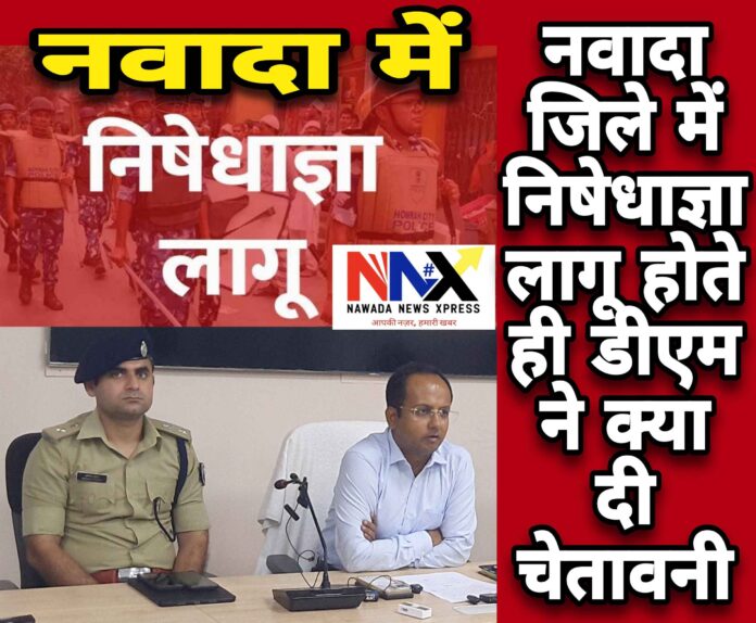 बिहार विधानसभा आम निर्वाचन–2025 की घोषणा के साथ ही नवादा जिले में प्रशासनिक सख्ती शुरू हो गई है। भारत निर्वाचन आयोग, नई दिल्ली द्वारा 6 अक्टूबर को चुनाव तिथियों की घोषणा करते ही आदर्श आचार संहिता लागू हो गई है। इसी क्रम में जिला दंडाधिकारी रवि प्रकाश ने भारतीय नागरिक सुरक्षा संहिता (BNSS) 2023 की धारा 163 के तहत पूरे नवादा जिले में निषेधाज्ञा जारी की है, जो निर्वाचन प्रक्रिया की समाप्ति तक या अधिकतम 60 दिनों तक प्रभावी रहेगी।