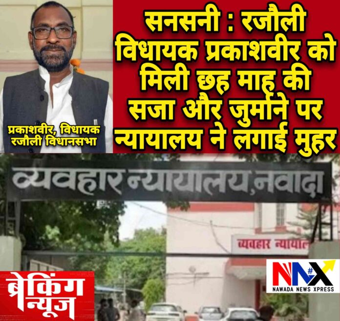 नवादा जिले के रजौली विधानसभा के वर्तमान विधायक प्रकाशवीर को बड़ी झटका देते हुए तृतीय जिला एवं सत्र न्यायाधीश सह एमपी-एमएलए स्पेशल सेशन कोर्ट के न्यायाधीश सुभाषचंद्र शर्मा ने छह माह का कारावास और एक हजार रुपये अर्थदंड की निचली अदालत द्वारा दी गई सजा को बरकरार रखा है।