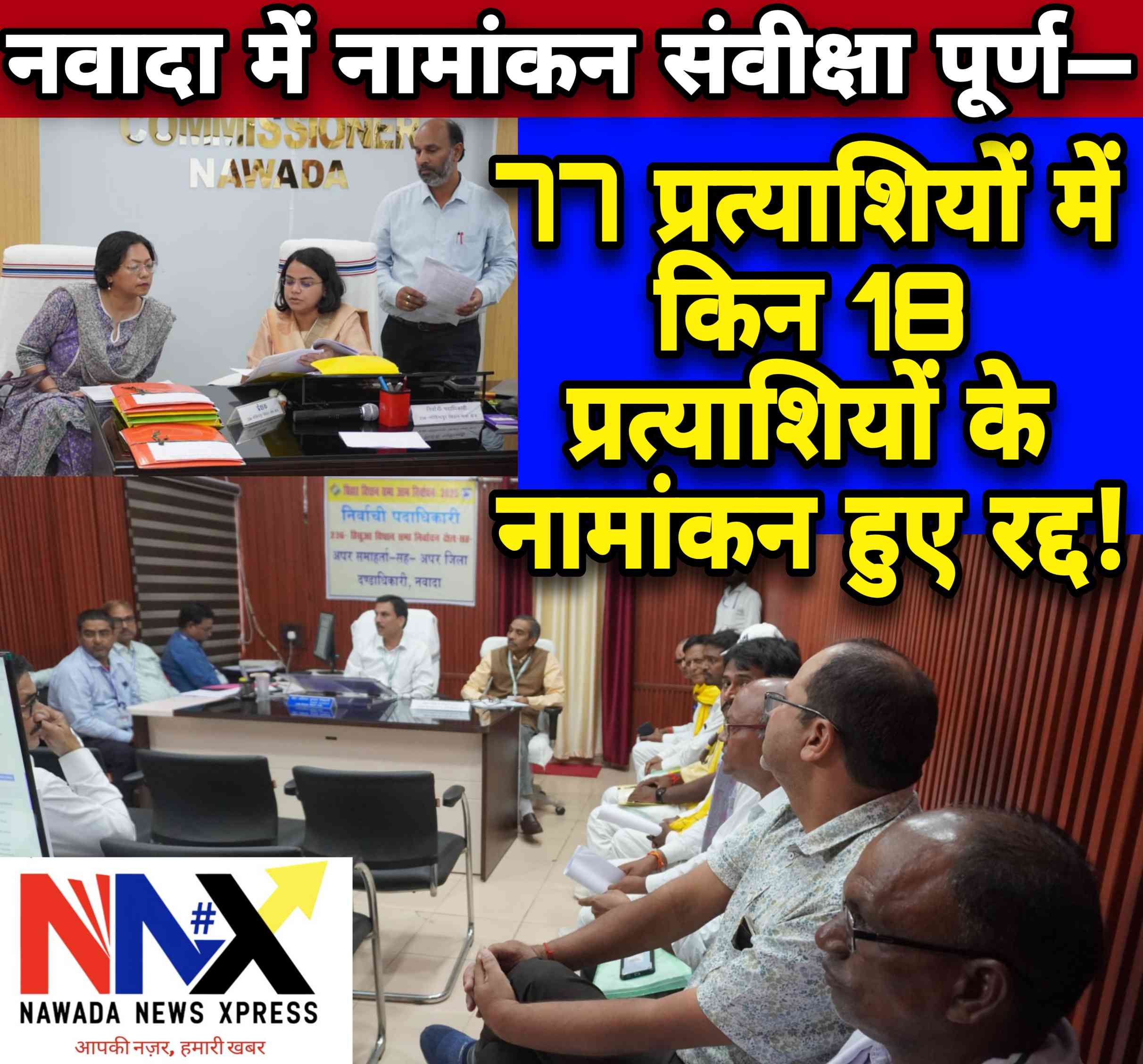 नवादा में नामांकन संवीक्षा पूर्ण— 77 प्रत्याशियों में किन 18 प्रत्याशियों के पर्चे हुए रद्द, पढ़ें पूरी खबर