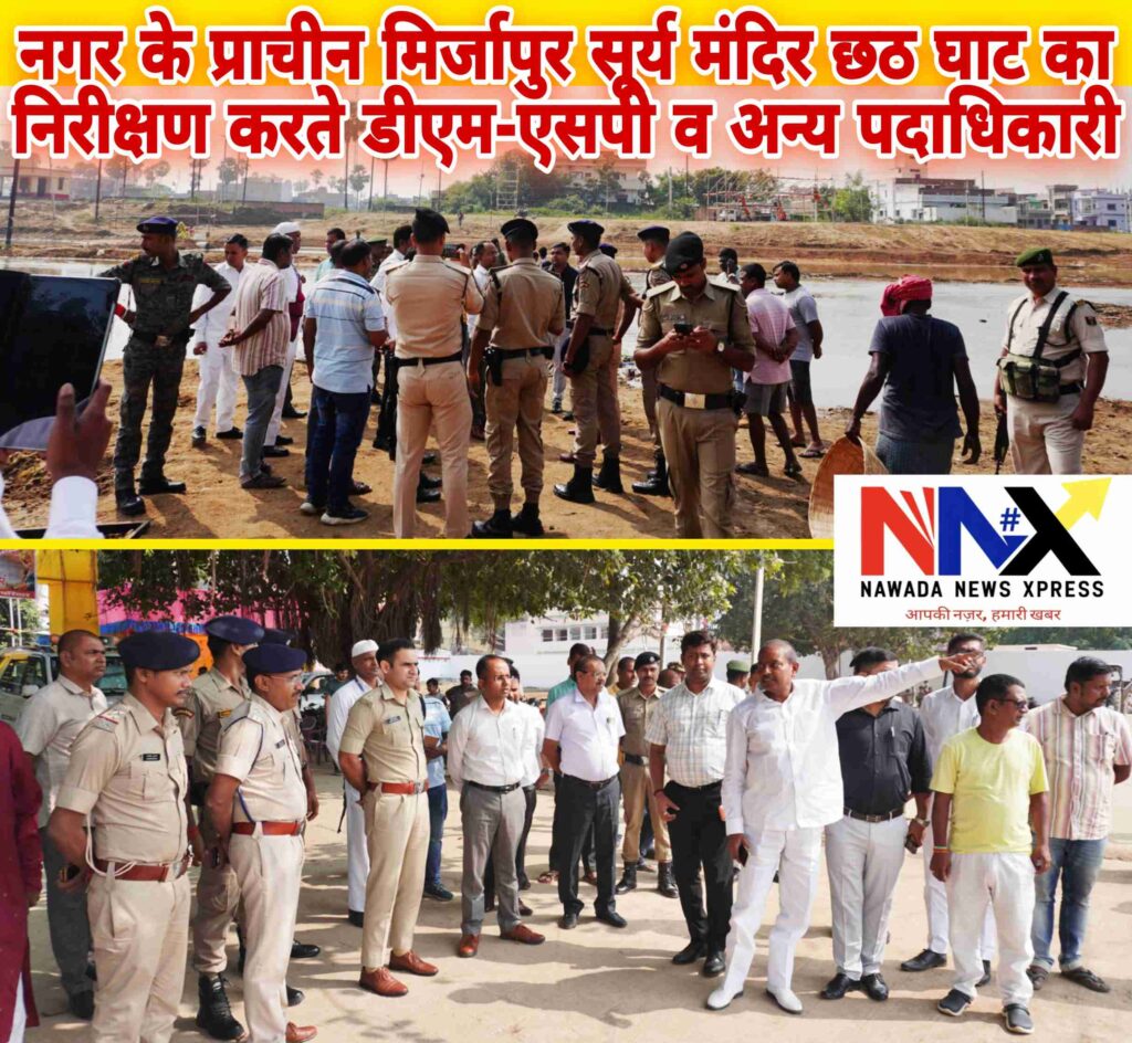 नवादा में लोक आस्था के महापर्व छठ पूजा को लेकर जिला प्रशासन पूरी तरह सक्रिय हो गया है। डीएम रवि प्रकाश नहाय खाय के दिन नवादा नगर परिषद क्षेत्र अंतर्गत मिर्जापुर स्थित सूर्य मंदिर छठ घाट का निरीक्षण कर तैयारियों की समीक्षा की। निरीक्षण के दौरान उन्होंने संबंधित पदाधिकारियों को निर्देश दिया कि सभी छठव्रतियों और श्रद्धालुओं के लिए स्वच्छता, पेयजल, प्रकाश व्यवस्था, चेंजिंग रूम और अन्य सभी मूलभूत सुविधाओं की समुचित व्यवस्था सुनिश्चित की जाए।
