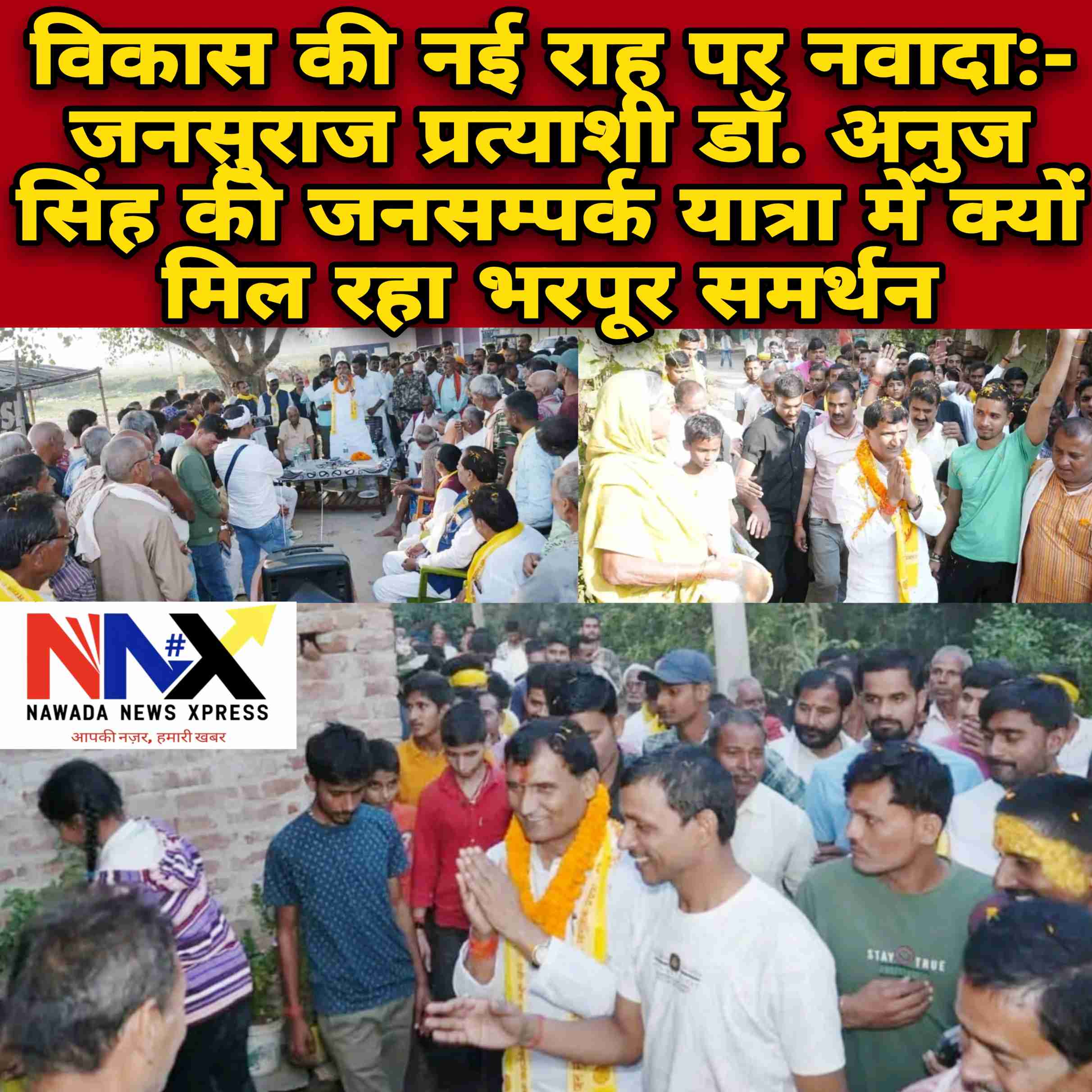 जनता के बीच पहुंचे डॉ. अनुज ने कहा “ मुझे जात-पात नहीं, काम और शिक्षा के मुद्दे पर दें वोट”, नवादा विधानसभा के कई गांवों में जनसम्पर्क अभियान चलाकर विकसित नवादा के लिए अपने पक्ष में वोट करने का किया अपील