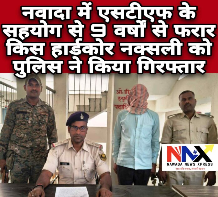 नवादा जिले के सिरदला थाना पुलिस ने एसटीएफ (स्पेशल टास्क फोर्स) के सहयोग से नौ वर्षों से फरार चल रहे एक हार्डकोर नक्सली को गिरफ्तार कर बड़ी सफलता हासिल की है। गिरफ्तार नक्सली की पहचान जहानाबाद जिला के घोषी थाना क्षेत्र अंतर्गत घोषी गांव निवासी रामकृत यादव के रूप में हुई है। उसके विरुद्ध सिरदला थाना कांड संख्या 264/16 दर्ज है।