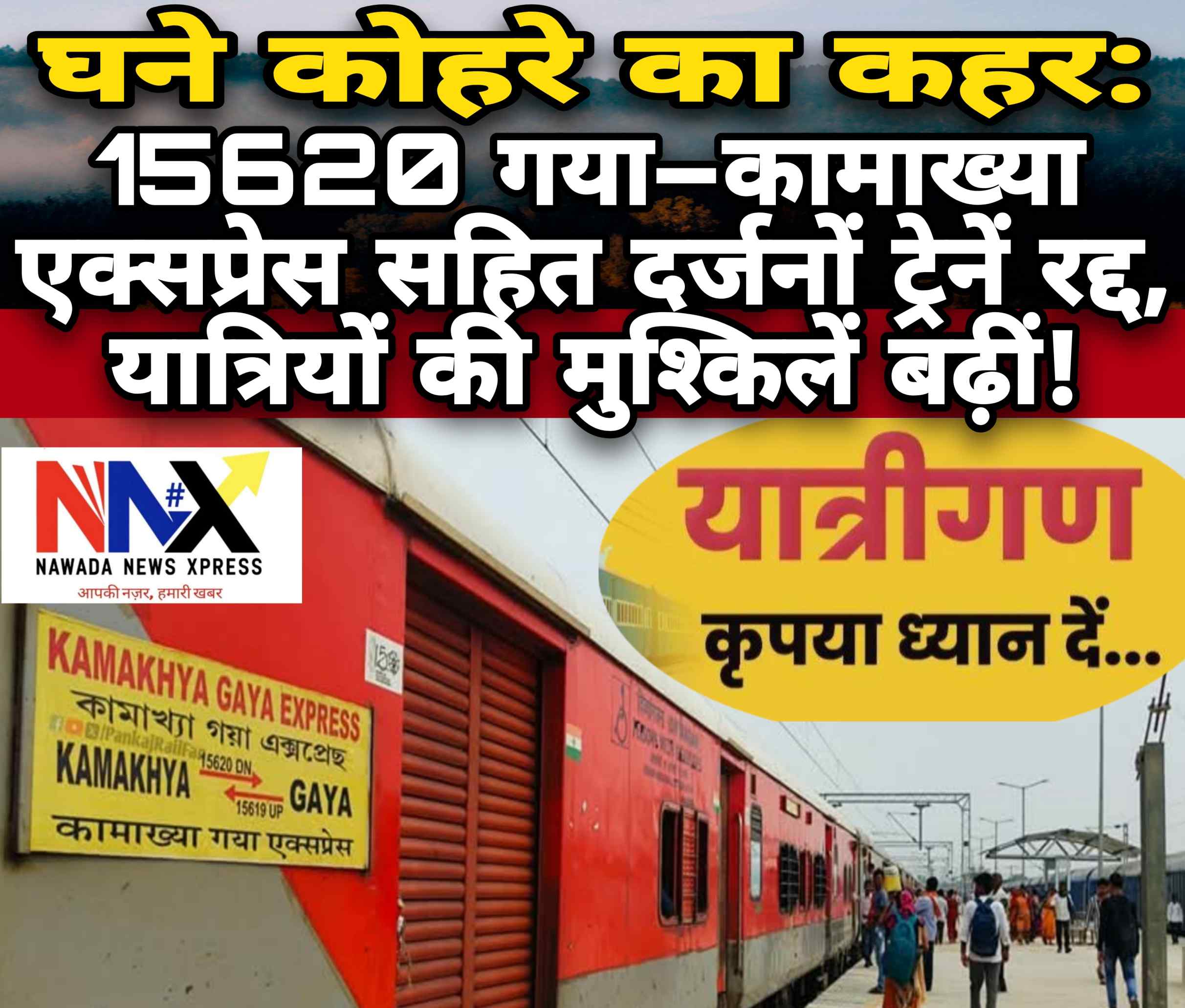घने कोहरे के कारण रेलवे ने संरक्षित रेल परिचालन सुनिश्चित करने के लिए बड़ा निर्णय लिया है। विशेषकर गाड़ी सं. 15620 गया–कामाख्या एक्सप्रेस को 1 दिसंबर 2025 से 23 फरवरी 2026 तक पूर्णतः रद्द कर दिया गया है। वहीं इसके अप दिशा की 15619 कामाख्या–गया एक्सप्रेस भी 2 दिसंबर 2025 से 24 फरवरी 2026 तक रद्द रहेगी। इस फैसले से गया, नवादा, बिहार, झारखंड व पूर्वोत्तर से आने-जाने वाले यात्रियों पर सीधा प्रभाव पड़ेगा। पूर्व मध्य रेलवे द्वारा जारी प्रेस विज्ञप्ति के अनुसार कोहरे के घने मौसम में संरक्षा सर्वोच्च प्राथमिकता है, इसलिए 1 दिसंबर 2025 से 28 फरवरी 2026 तक बड़ी संख्या में ट्रेनों के परिचालन में बदलाव किया गया है। इनमें कई ट्रेनें पूर्णतः रद्द, कुछ आंशिक रद्द, जबकि कुछ की फ्रीक्वेंसी कम की गई है।