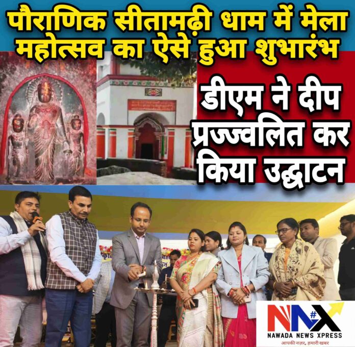 नवादा जिले के मेसकौर प्रखंड स्थित पौराणिक सीतामढ़ी धाम में कला, संस्कृति एवं युवा विभाग, बिहार सरकार तथा जिला प्रशासन, नवादा के संयुक्त तत्वावधान में आयोजित “सीतामढ़ी मेला महोत्सव 2025” का शुभारंभ गरिमामय वातावरण में हुआ। उद्घाटन समारोह ऐतिहासिक और आध्यात्मिक महत्व से परिपूर्ण माता सीता की पावन स्थली में आयोजित किया गया, जहां श्रद्धा, संस्कृति और उत्साह का अनूठा संगम देखने को मिला।