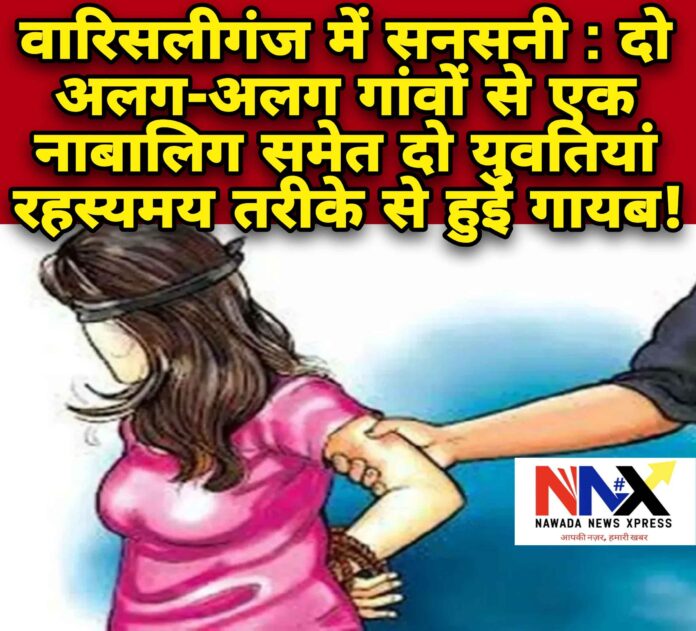 नवादा जिले के वारिसलीगंज थाना क्षेत्र अंतर्गत दो अलग-अलग गांवों में उस वक्त हड़कंप मच गया जब एक नाबालिग समेत दो युवतियां रहस्यमय परिस्थिति में गायब हो गईं। दोनों मामलों में परिजनों ने थाने में अलग-अलग प्राथमिकी दर्ज कराते हुए आशंका जताई है कि उनकी बेटियों को शादी की नीयत से बहला-फुसलाकर भगाया गया है। पुलिस दोनों मामलों में गंभीरता दिखाते हुए जांच में जुट गई है।