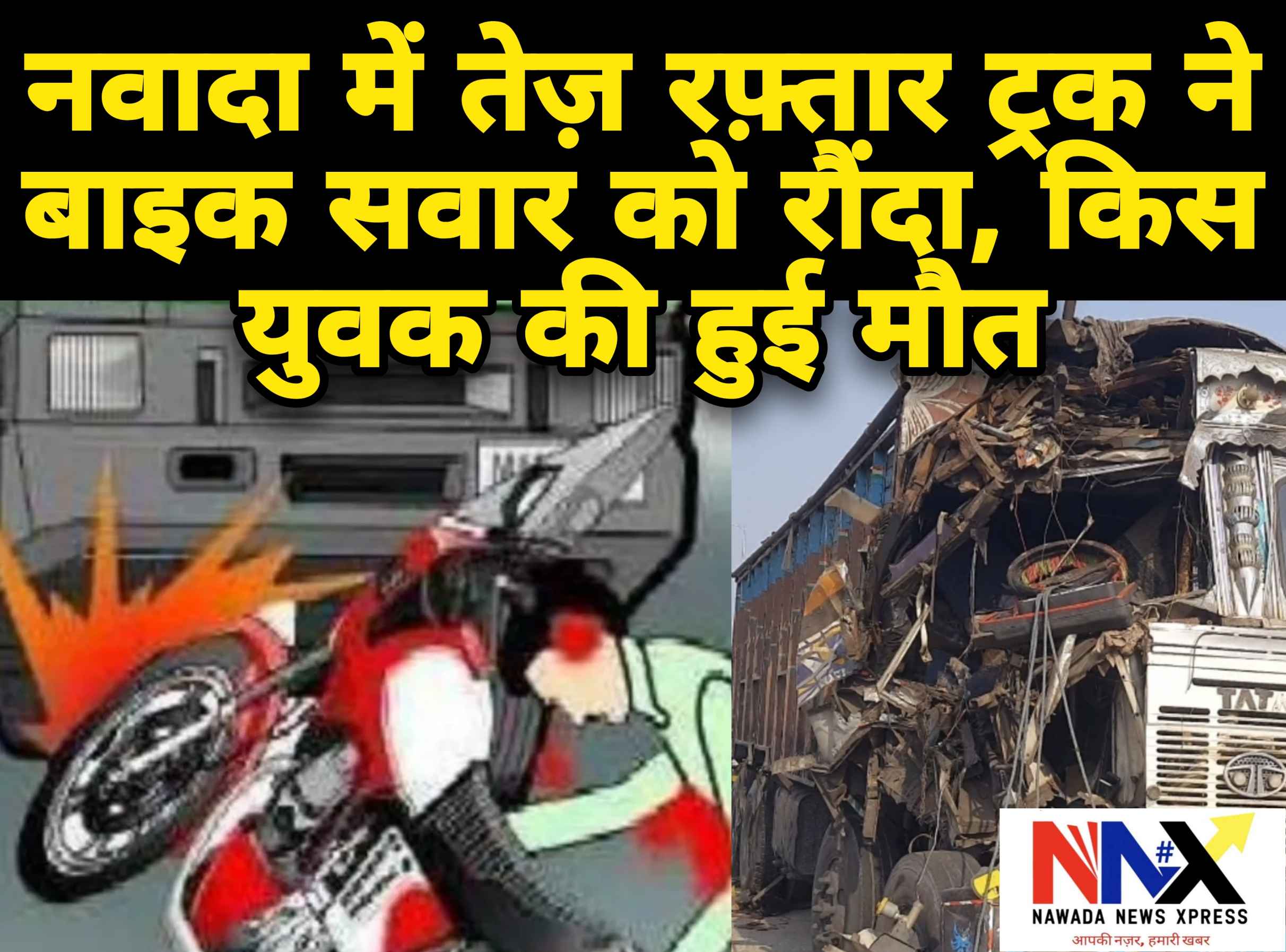 नवादा जिले के नेमदारगंज थाना क्षेत्र अंतर्गत मस्तानगंज टीओपी के समीप एनएच-20 पर सोमवार तड़के एक दर्दनाक सड़क हादसा हुआ, जिसमें तेज़ रफ़्तार ट्रक ने बाइक सवार युवक को रौंद दिया। दुर्घटना होते ही मौके पर मौजूद टीओपी पुलिस ने घायल युवक को तुरंत सदर अस्पताल पहुंचाया, जहां डॉक्टरों ने उसे मृत घोषित कर दिया। पुलिस ने आसपास के लोगों की मदद से मृतक की पहचान नेमदारगंज निवासी अर्जुन रविदास के 30 वर्षीय पुत्र राम प्रवेश कुमार के रूप में की।