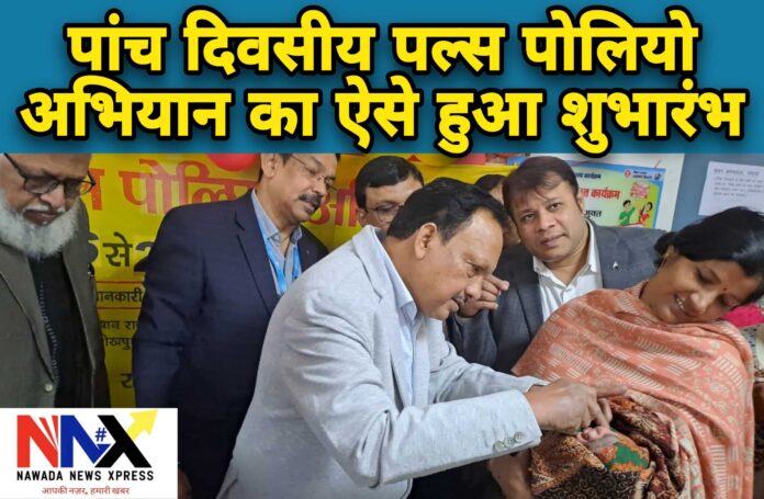 नवादा जिले में पल्स पोलियो उन्मूलन की दिशा में एक और अहम कदम उठाते हुए पल्स पोलियो अंतरराष्ट्रीय टीकाकरण अभियान का शुभारंभ मंगलवार को किया गया। सदर अस्पताल नवादा में सिविल सर्जन डॉ विनोद कुमार चौधरी द्वारा नवजात शिशु को पोलियो की खुराक पिलाकर अभियान का विधिवत उद्घाटन किया गया। यह अभियान 16 दिसंबर से 20 दिसंबर 2025 तक जिले के सभी प्रखंडों में चलाया जाएगा। इस दौरान शून्य से 5 वर्ष तक के सभी बच्चों को घर-घर जाकर पोलियो की दवा पिलाई जाएगी।