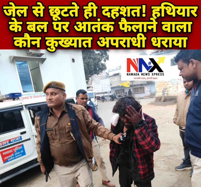 नवादा नगर थाना पुलिस को लंबे समय से नाको दम कर रहा एक कुख्यात अपराधी आखिरकार पुलिस के हत्थे चढ़ गया। गुरुवार की दोपहर लाइनपार मिर्जापुर मुहल्ला स्थित मुसहर टोली में हथियार लहराकर आतंक फैला रहे अपराधी को पुलिस ने साहसिक कार्रवाई करते हुए लोडेड पिस्टल के साथ गिरफ्तार कर लिया।