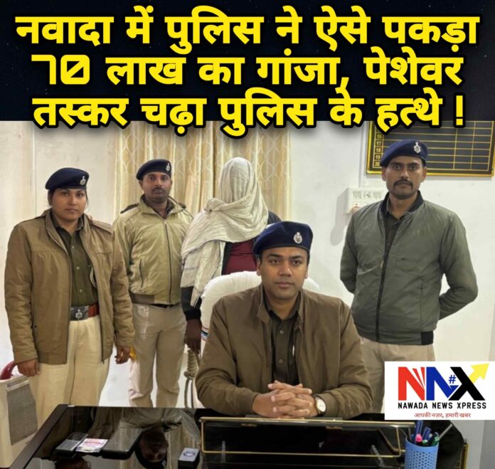 नवादा पुलिस ने मादक पदार्थ तस्करी के खिलाफ बड़ी सफलता हासिल करते हुए अंतरजिला गांजा तस्करी के एक संगठित नेटवर्क का भंडाफोड़ किया है। पुलिस ने डाक पार्सल के नाम पर ले जाए जा रहे 142 किलोग्राम गांजा के साथ एक तस्कर को गिरफ्तार किया है। जब्त गांजे की अनुमानित बाजार कीमत करीब 70 लाख रुपये बताई जा रही है।
