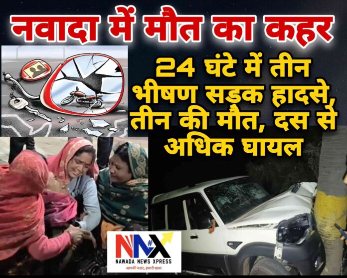 नवादा में तेज रफ्तार का तांडव: 24 घंटे में तीन भीषण सड़क हादसे, तीन की मौत, दस से अधिक घायल