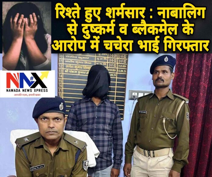 नवादा जिले के वारिसलीगंज थाना क्षेत्र में नाबालिग लड़की के साथ दुष्कर्म कर उसका वीडियो बनाकर ब्लैकमेल करने के आरोप में पुलिस ने एक युवक को गिरफ्तार किया है। पुलिस ने पोक्सो एक्ट के तहत मामला दर्ज कर आरोपी को न्यायिक हिरासत में भेज दिया है।