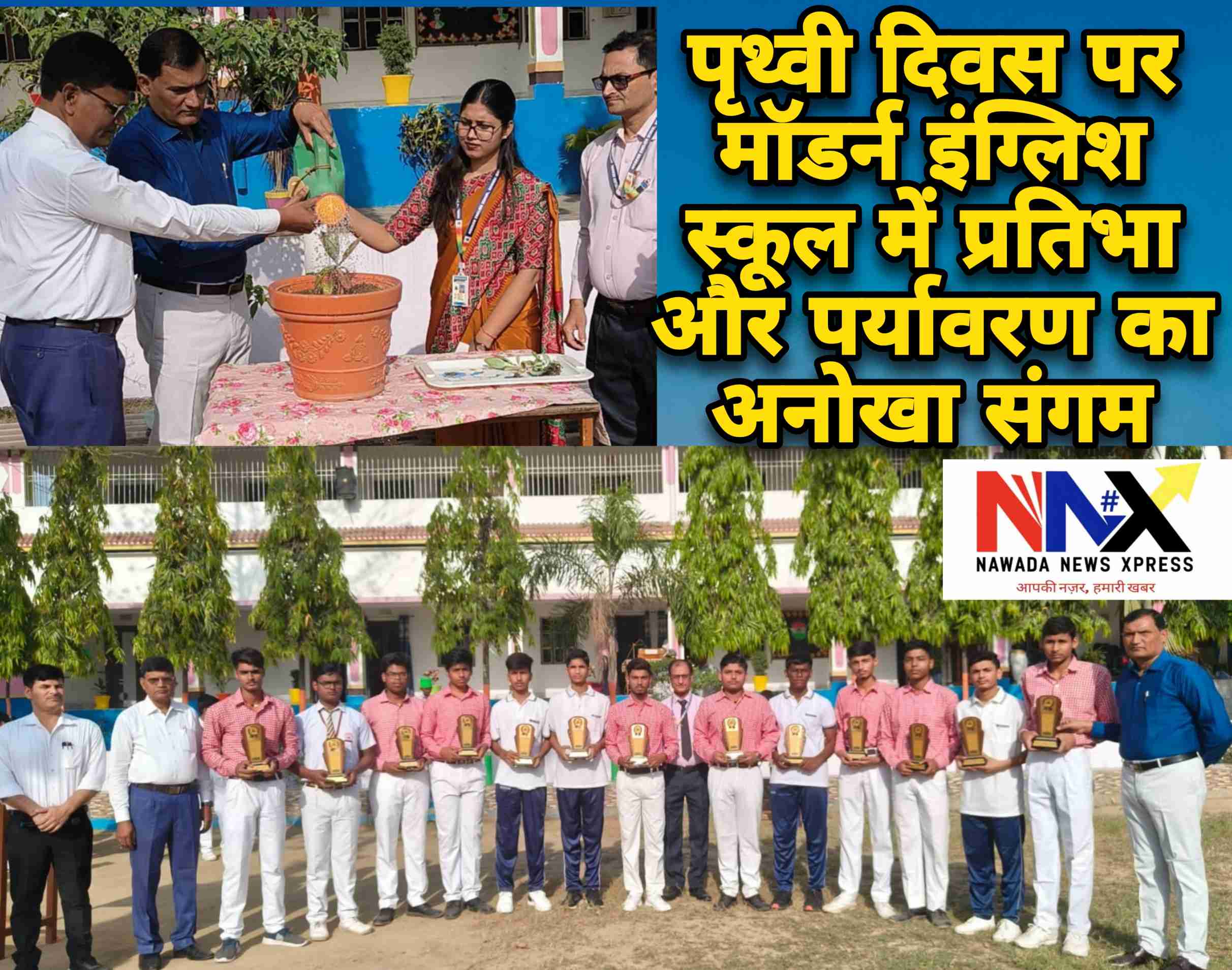 नवादा के प्रख्यात मॉडर्न शैक्षणिक समूह की शाखा मॉडर्न इंग्लिश स्कूल, कुंती नगर में बुधवार को एक ऐसा आयोजन देखने को मिला, जहां एक ओर सीबीएसई दसवीं परीक्षा में उत्कृष्ट प्रदर्शन करने वाले विद्यार्थियों को सम्मानित किया गया, वहीं दूसरी ओर विश्व पृथ्वी दिवस के अवसर पर पर्यावरण संरक्षण का सशक्त संदेश भी दिया गया। कार्यक्रम की शुरुआत प्रातः प्रार्थना सभा से हुई, जिसके बाद विद्यालय परिसर में सादगीपूर्ण लेकिन गरिमामय सम्मान समारोह आयोजित किया गया।